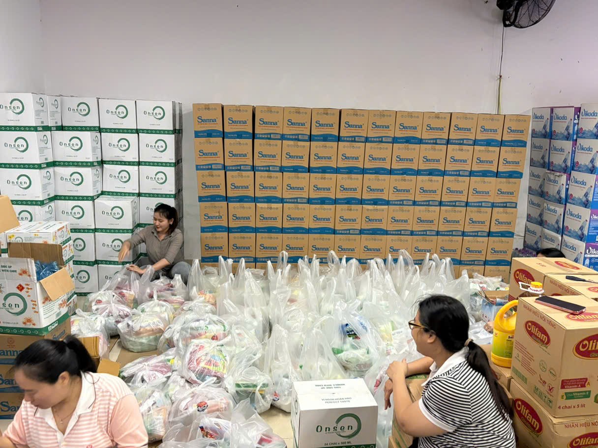 Hơn 500 suất quà (gồm nước uống, sữa TH True Milk, bánh gạo, bánh lúa mạch, mì tôm, ruốc, thịt hộp xà bông diệt khuẩn, áo mưa, dầu gió, đèn pin, thuốc cảm) và 250 bộ quần áo, chăn màn đến bà con vùng ảnh hưởng bởi lũ lụt.